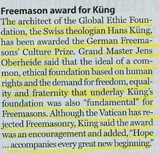 | la masonería, la Iglesia de Satanás premia a Hans Küng |
